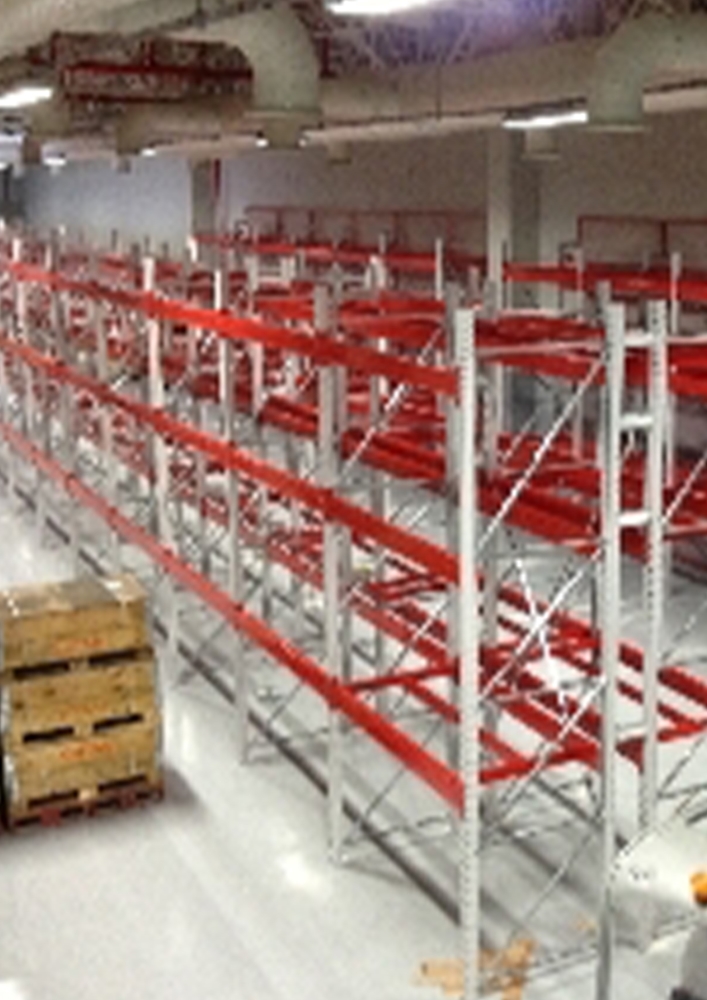 Çeşitli aksesuarlara sahip olan paletli raflama sistemi en iyi yer kullanımıyla paletlerin, konteynırların, vb. malzemelerin depolanmasını sağlar. Depolama katları (yüzeyleri) depolanacak malzemenin ağırlıklı ve sayısına bağlı olarak raflama sisteminde maksimum yer kullanımını sağlar. 2’li, 3’lü veya 4’lü malzeme depolaması için yer oluşturulabilir. Ürünler, yanyana en ekonomik çözümdür. Depolanacak koşullardaki en yüksek en uzun ölçülere çıkabilir.